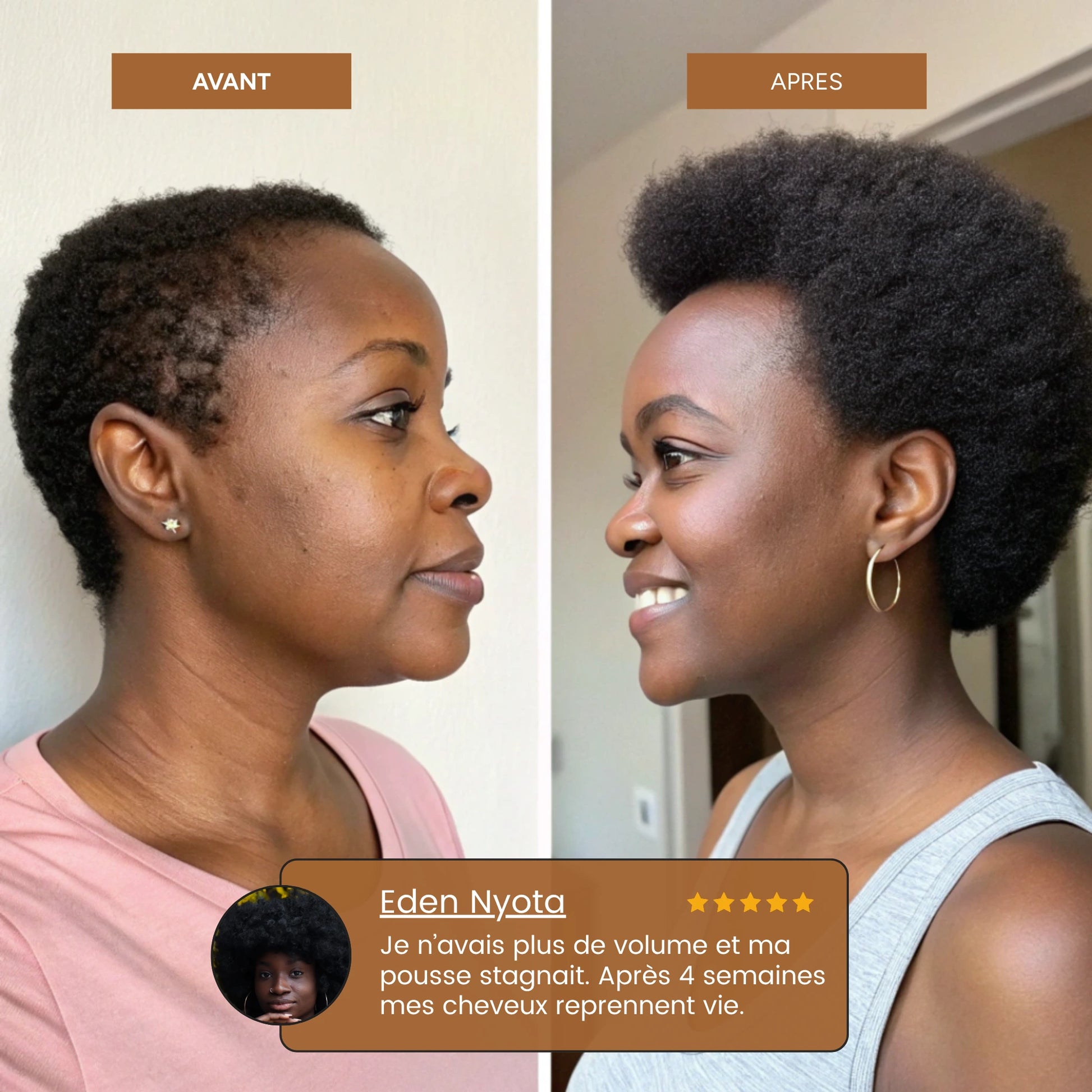 Notre formule riche en vitamine E, acides gras essentiels et nutriments naturels nourrit le cuir chevelu, répare la fibre capillaire et stimule la repousse pour des cheveux plus forts, denses et éclatants.